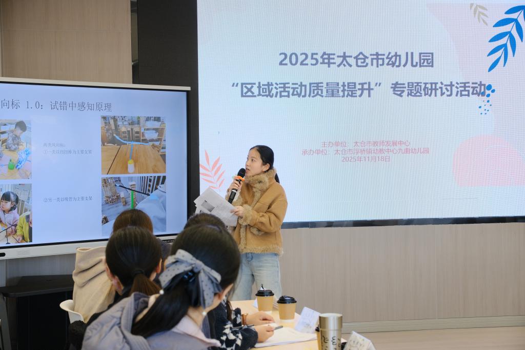 为进一步优化区域活动环境与材料配置,提升教师区域活动组织指导能力,促进幼儿自主探究与全面发展,太仓市浮桥镇幼教中心九曲幼儿园于2025年1 1月18日,承办了太仓市幼儿园“区域活动质量提升”专题活动。全体教师齐聚一堂,通过案例分享、现场观摩、集中研讨等形式,共话区域活动高质量发展新路径。