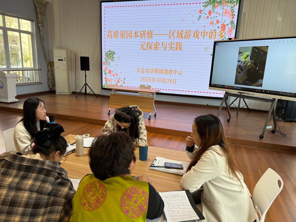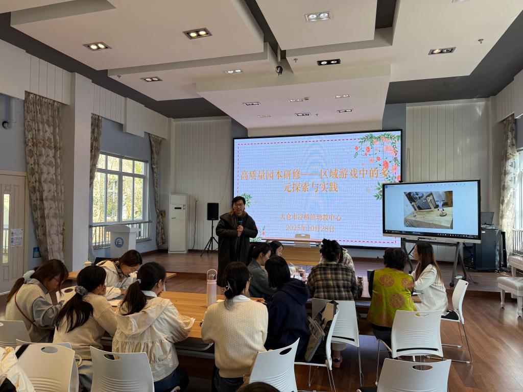为进一步推动园本教研的高质量发展,提升教师游戏设计与指导的能力,为幼儿创设更富支持性的学习环境,太仓市浮桥镇幼教中心于2025年10月28日开展了以“区域活动中的多元探索与实践”为主题的培训活动。本次活动邀请了成都观录童真教育咨询有限公司高级培训师张乐凯老师,带领中心青年、骨干教师共同观摩研讨。